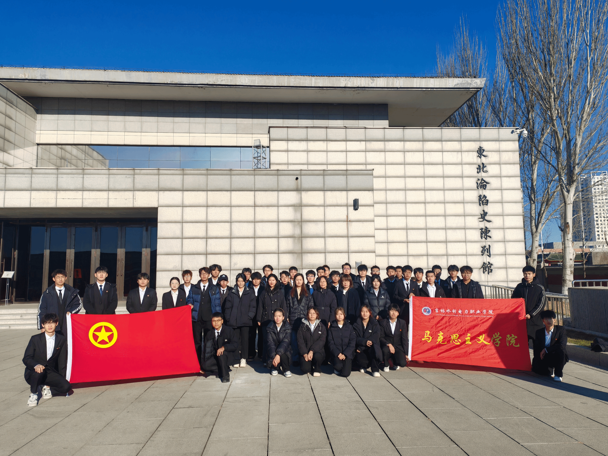 为深化爱国主义教育、传承红色基因,切实落实《形势与政策》课程“理论联系实际、历史映照现实”的教学要求,引导青年学生在历史溯源中深化国情认知,在红色浸润中筑牢思想根基,11月21日上午,马克思主义学院组织教师代表及学生干部赴东北沦陷史陈列馆开展“铭记抗战历史 坚定民族信念主题实践教育活动,推动课程专题教学从“课堂讲授”向“沉浸式体验”延伸,让青年学生在回望烽火岁月中感悟家国情怀,在缅怀革命先烈中凝聚奋进力量,以史为鉴、珍爱和平,勇担新时代青年的使命担当。